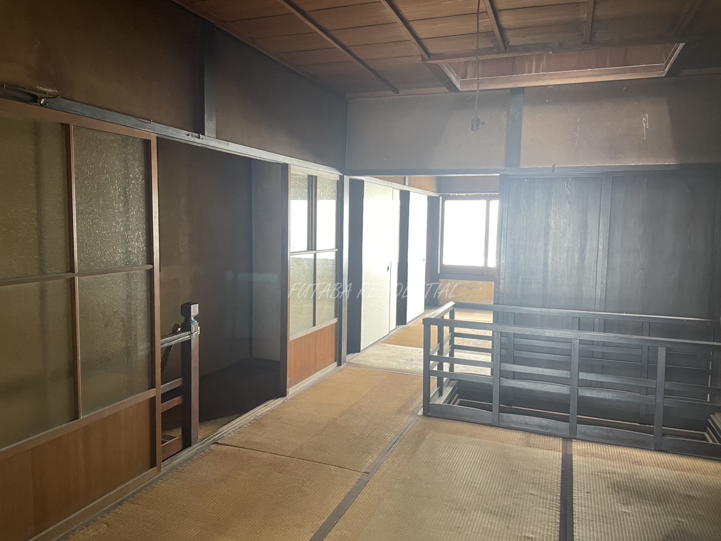 土地面積約55.91坪、建物面積約53.59坪の7K構成。和室が複数あり、離れや地下室も備えた多用途空間になっております。