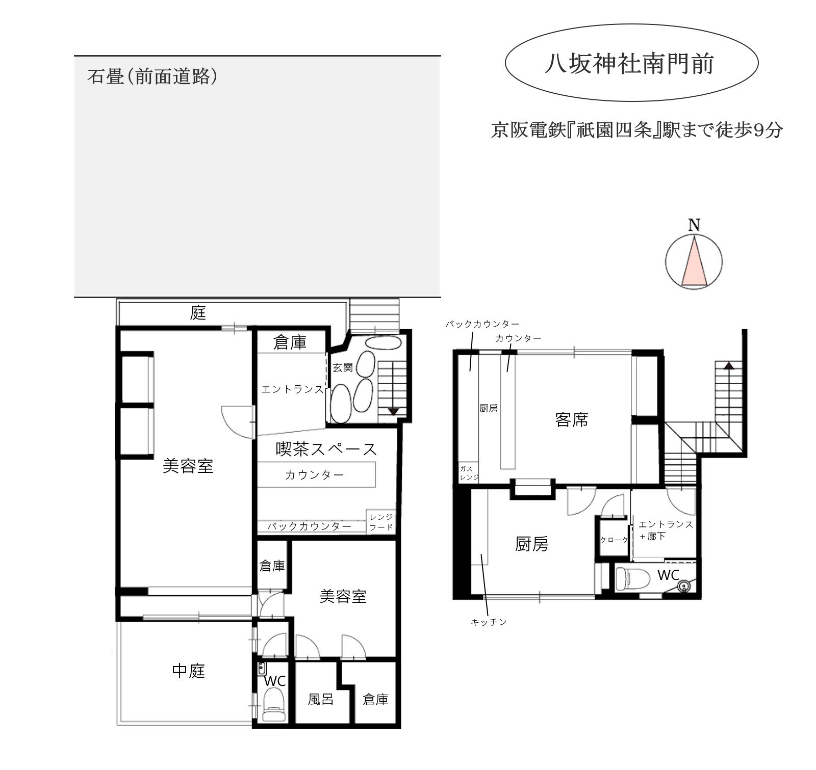 東山区祇園町南側に位置する本物件は、京都を代表する観光地・祇園の中心にあり、八坂神社や花見小路通といった歴史的・文化的な名所にほど近く、国内外からの集客力に優れた立地です。伝統的な町並みに調和する外観と、石畳の路面に面した高い視認性を備えた店舗は、飲食・物販・ギャラリーなど多様な業態に対応可能で、祇園の格式と賑わいを活かした展開が期待できます。