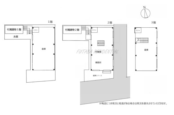 現状有姿、売主の契約不適合責任免責 付属建物有 事務所適す 道路と段差有 現在盛業中
