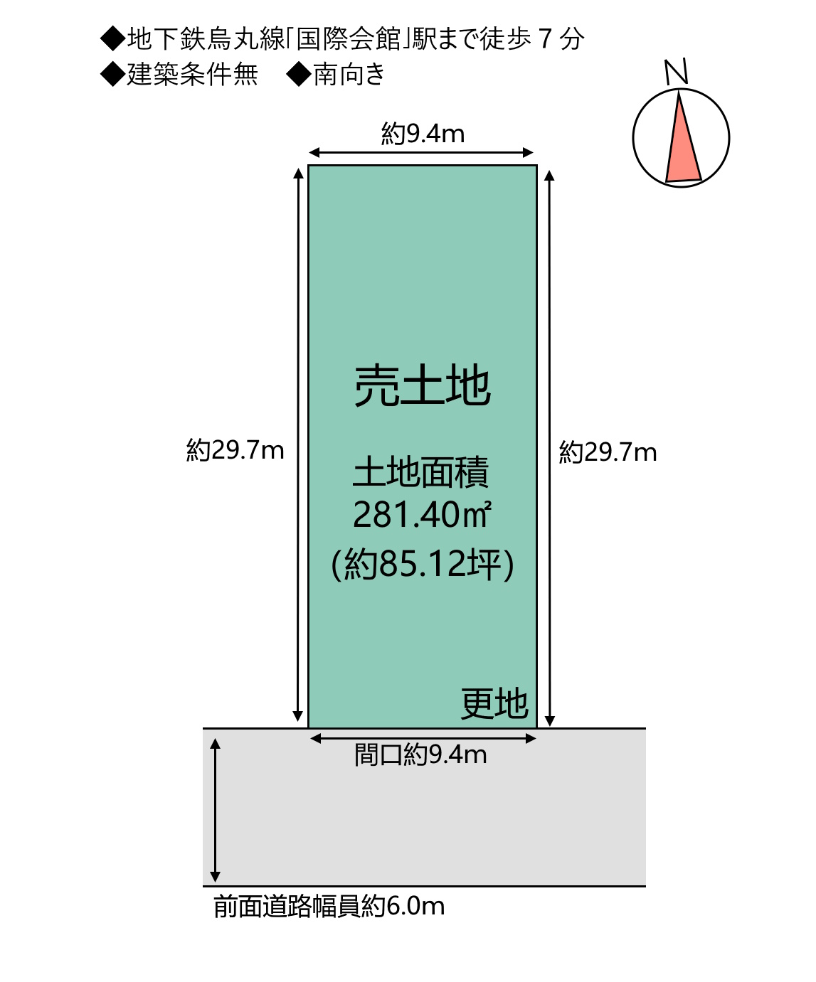 | 接道方向1 | 南 | 接道間口1 | 約9.4m |