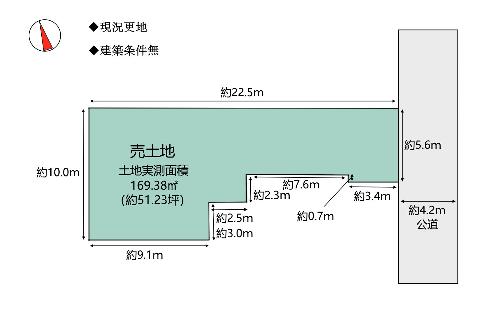| 土地面積 | 169.38m²(51.23坪) | 土地面積計測方式 | 実測 |