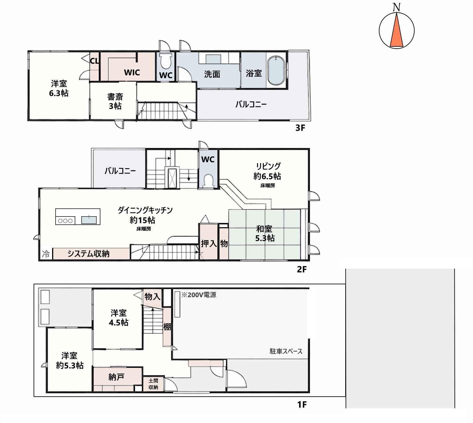 | 敷地全体面積 | 延べ床面積 | 159.75m²(48.32坪) | |