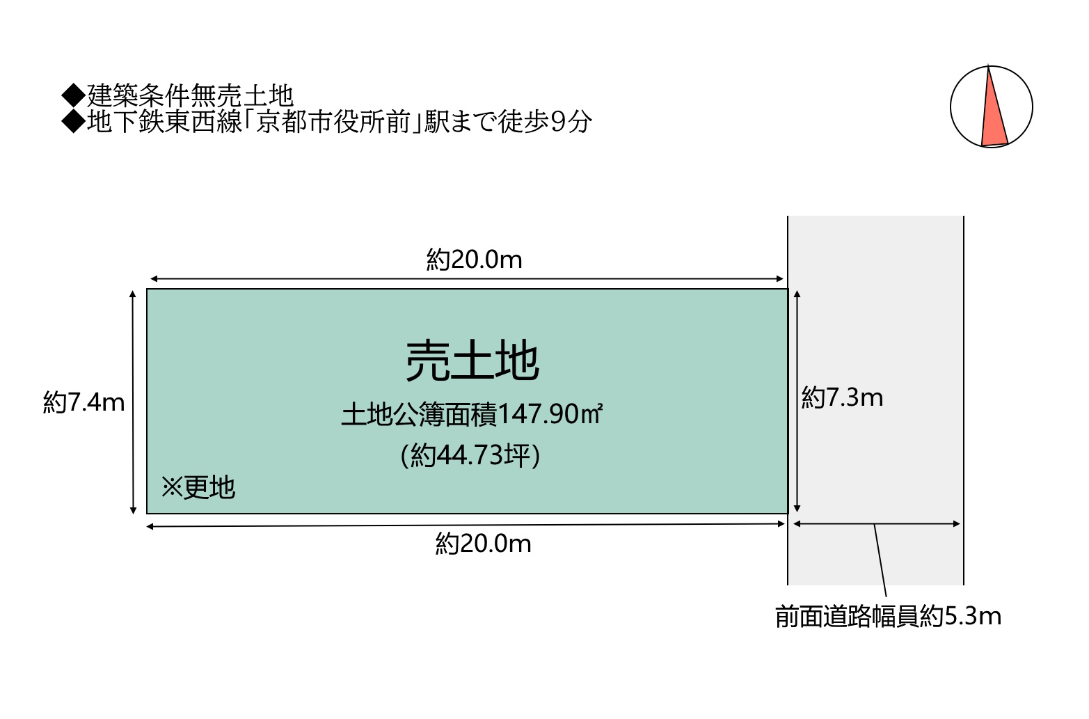 | 接道方向1 | 東 | 接道間口1 | 約7.3m |