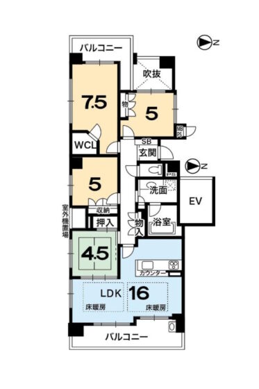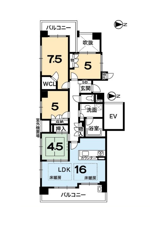 | バルコニー | 15.89m²(4.8坪) | 向き | |